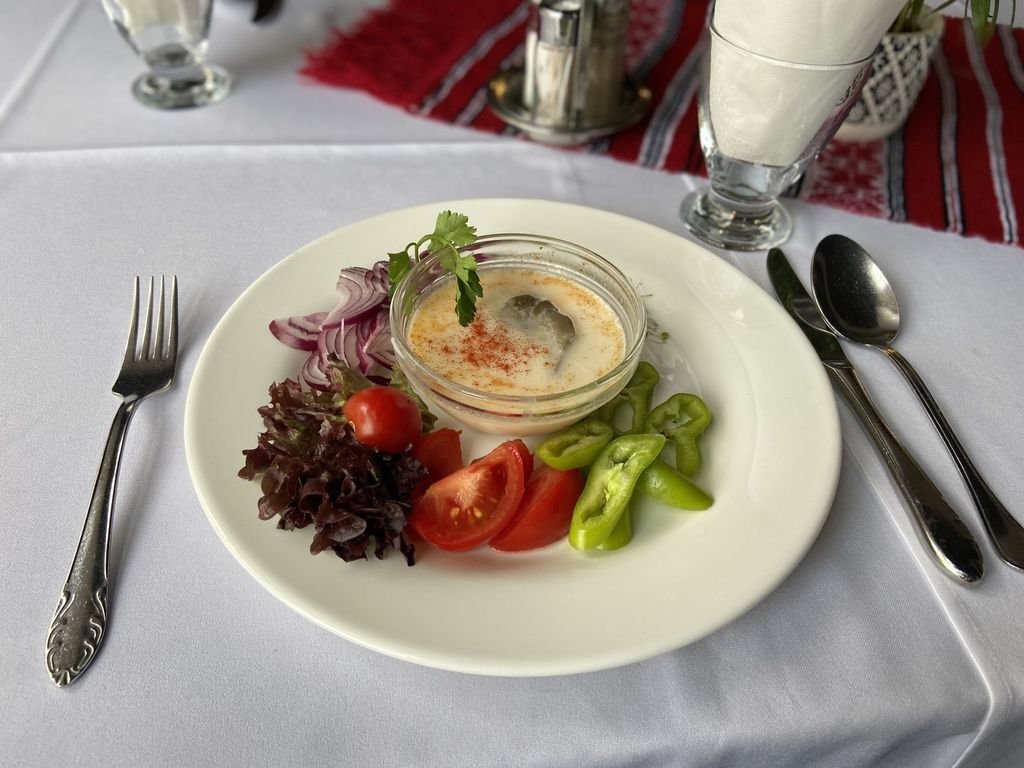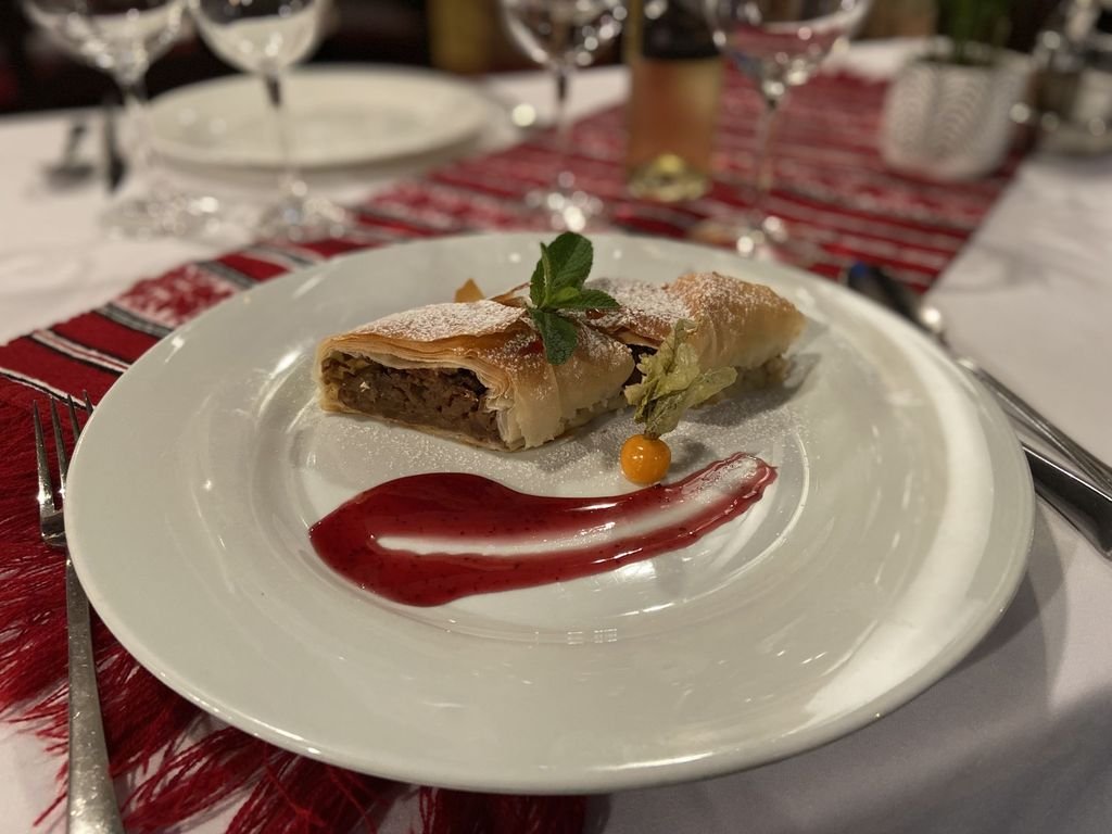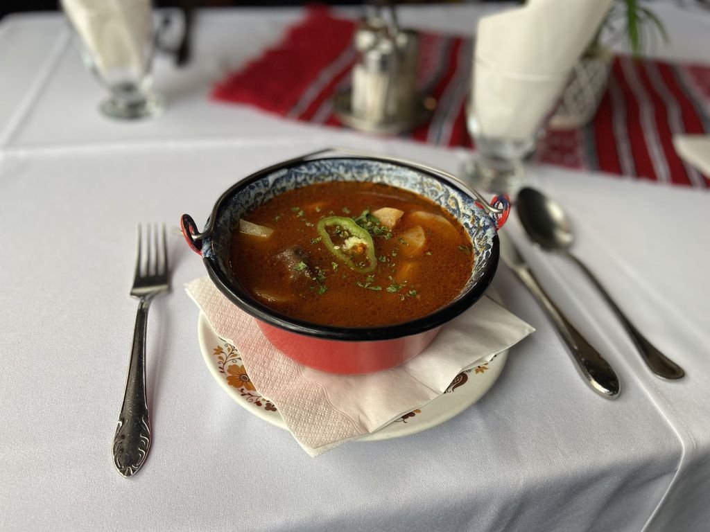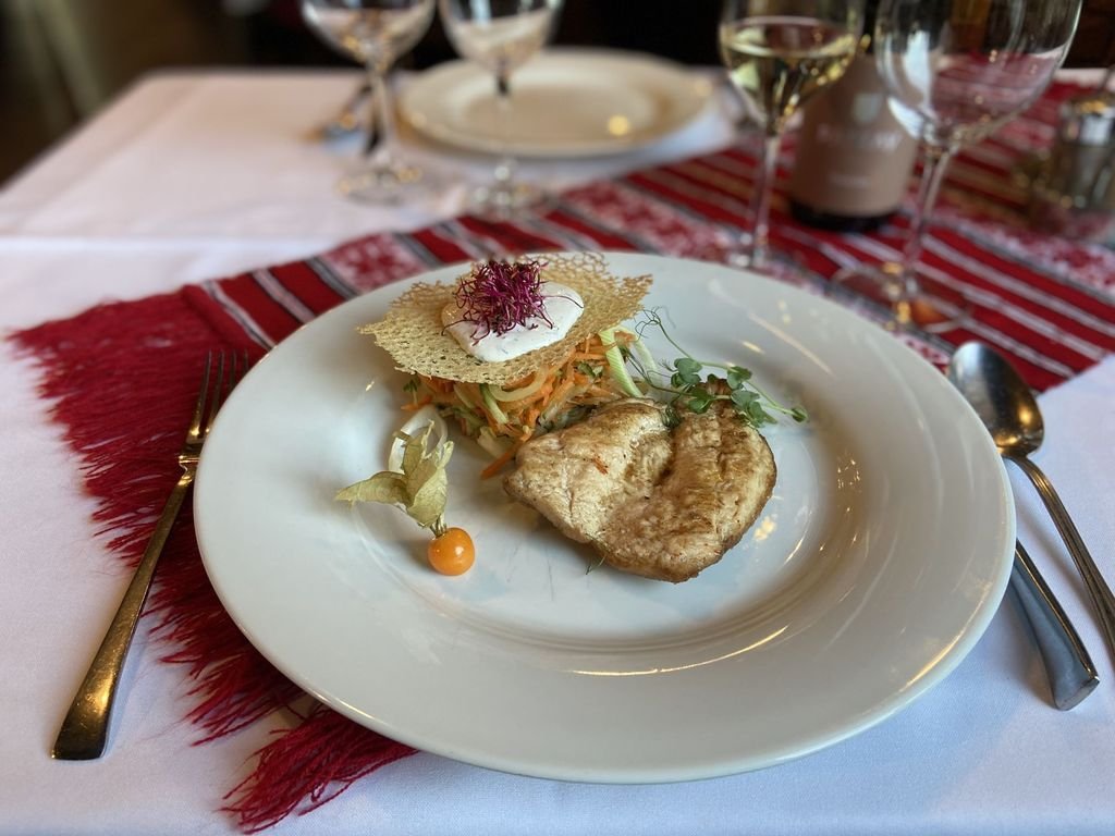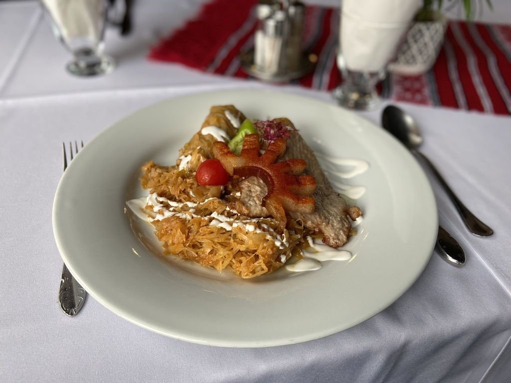Bélszín Budapest módra (lecsóval, zöldborsóval, libamájjal)
